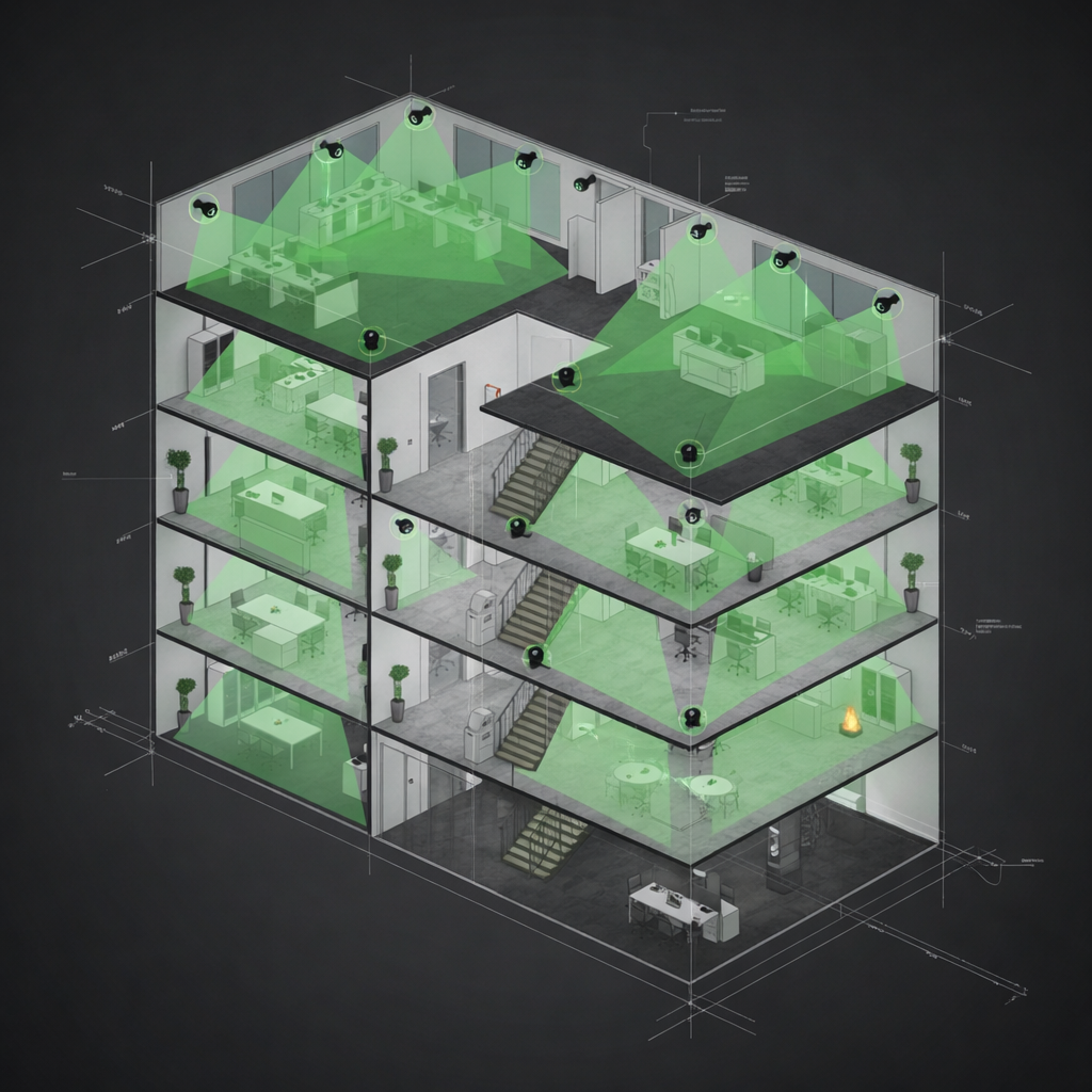 - Conformité et documentation : l’emplacement des caméras et les zones de couverture peuvent être validés par rapport aux normes de sécurité et aux exigences des clients.